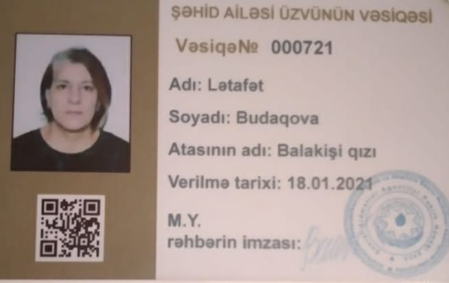 Paylaşımda deyilir: “Şəhid Yusif Budaqovun anası Lətafət xanım!