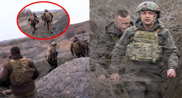 Alp.az xəbər verir ki, dövlət başçısı həyatını təhlükəyə ataraq, separatçıların snayperlə nişan ala biləcəyi ərazidən keçib. Yayımlanan görüntülərdə Zelenskinin gülləyə tuş gəlməməsi üçün həmin ərazidən qaçaraq keçdiyi əks olunub. Bununla belə, dövlət başçısının təmas xəttinin ön sıralarında olması, böyük təqdir edilib.