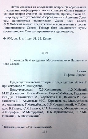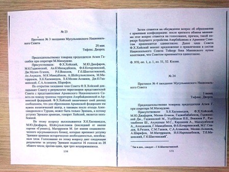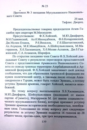 Milli Şuranın 28 üzvündən 16-sı İrəvanın güzəşt edilməsinin lehinə, 1 nəfər əleyhinə səs verib, 3 nəfər isə bitərəf qalıb, digərləri səsverməyə qatılmayıb.