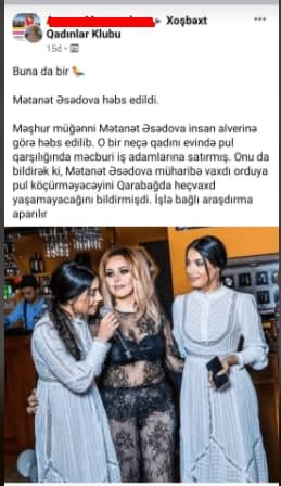 İddialara görə, Mətanət Əsədova insan alverinə görə həbs edilib. Məlumatda deyilir ki, o, bir neçə qadını evində pul qarşılığında iş adamlarına satırmış.