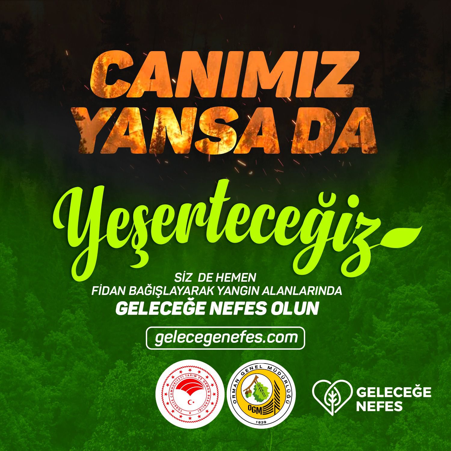 Yanğından zərər çəkmiş meşə sahələrini yaşıllaşdırmaq üçün “Yaşıl Vətən” şüarı ilə davam etdirilən “Gələcəyə Nəfəs” kampaniyasına Türkiyənin hər yerindən kömək gəlir.